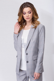 Жакет – полиэстер 62%, вискоза 33%, спандекс 5%. Блузка – вискоза 62%, полиэстер 28%, спандекс 10%. Брюки – полиэстер 62%, вискоза 33%, спандекс 5%.