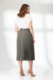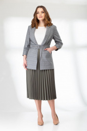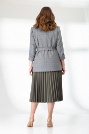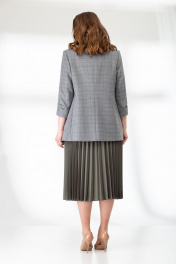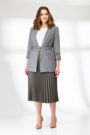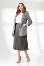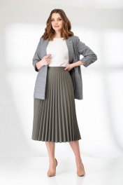 Весенний комплект тройка состоит из жакета, блузки и плиссированной юбки. Жакет прямого силуэта, полностью на подкладке, выполнен из высококачественной костюмной ткани, в трендовом принте - клетка. Жакет без застежки, с длинными лацканами. По бокам функциональные карманы. Так же есть вытачки, которые выгодно подчеркивают силуэт. Рукав 3/4, по низу две горизонтальные складки и разрез. По спинке средний шов. Блузка, выполнена из приятной блузочной ткани с добавлением вискозы. Блузка прямая, горловина округлая, рукав спущенный. Юбка плиссерованная, в стильном цвете хаки. Юбка на поясе, длина миди. Юбочный комплект позволит вам создавать множество образов: деловой, повседневный, романтичный. Просто сочетайте с другими вещами гардероба и выглядите стильно каждый день. Длина жакета по спинке - 72 см. Длина блузки по спинке - 66 см. Длина юбки - 79 см .