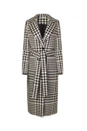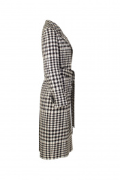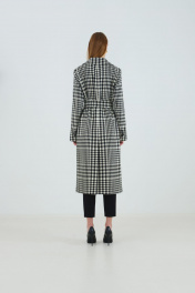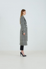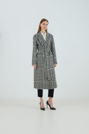 Демисезонное черное пальто с шлицей и потайной застежкой Elema 1-120019-1-164 клетка