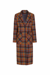 Пальто демисезонное на пуговицах из шерсти и пальтовой ткани Elema 1-12745-1-164 коралловая_клетка