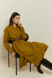 Платье из шерстяного текстиля на каждый день с классическим стилем Elema 5К-12923-1-164 олива