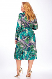Данная модель позволяет стать основой стильного образа уверенной в себе женщины. В таком наряде невозможно остаться без внимания. Платье расширенное к низу. Горловина V-образной формы с застежкой на пуговицах до уровня талии. Воротник отложной. Рукав втачной, длинный, с отрезной манжетой. В комплекте съемный пояс из основной ткани.