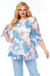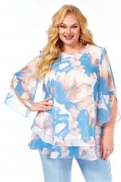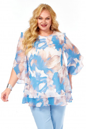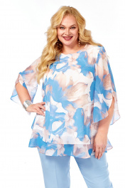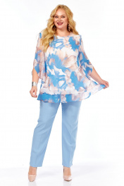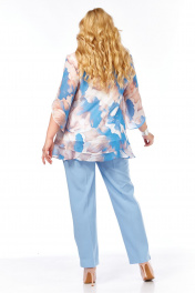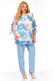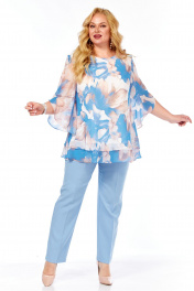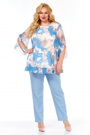 Блуза, брюки Элль-стиль 2213.7 голубой_принт_цветы_брюки_голубые
