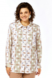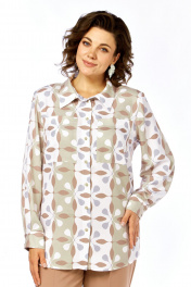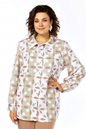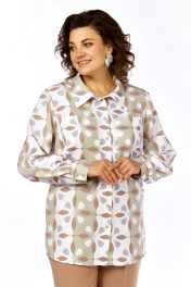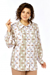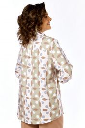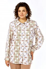 Блуза прямого силуэта. По центру полочки застежка в виде планки на миниатюрные пуговицы. Полочки с накладными карманами. Воротник отложной, рукав втачной, внизу обработан притачной манжетой с застежкой на пуговицы. Спинка с отрезной кокеткой, низ скруглен, в боковых швах небольшие разрезы.