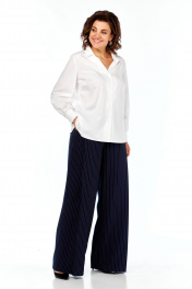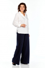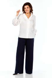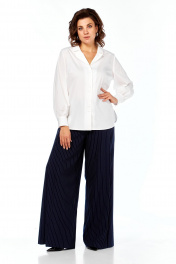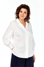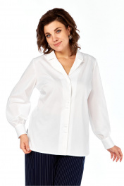 Прекрасный вариант для визитов в офис, а так же в место, где уместен деловой стиль. Идеальные возможности для создания современного офисного стиля с использованием хлопковой блузы. Модель полуприлегающего силуэта с застежкой спереди на пуговицы. Воротник аккуратный отложной. Рукав втачной, по низу оформлен складками и притачной манжетой, застегивающейся на пуговицы. В боковых швах скругленные разрезы. Спинка с вертикальными выточками.