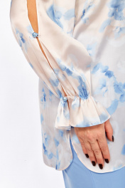 Сделайте свой образ нежным и очаровательным. Нарядная блуза будет прекрасно сочетаться с любыми базовыми вещами из вашего гардероба. Воздушные рукава с разрезами и бусинами создают атмосферу романтики и женственности, манжет со сборкой на резинке. Вырез горловины округлой формы. Спина цельнокроеная. В боковых швах предусмотрены разрезы.