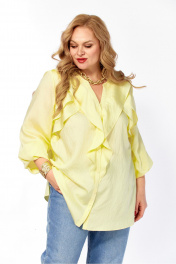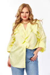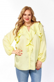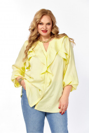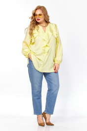 Выразительная модель, которая собирает легкий образ. Она придаст вашему виду нежность и очарование. Свободный крой деликатно выстраивает силуэт, не обтягивая фигуру. Блузочная ткань держит форму и остаётся аккуратной в течение дня. Главным акцентом модели являются мягкие воланы по переду. Эстетично подчеркнут V- образный вырез горловины, по переду застёжка на пуговицы. Рукав втачной, свободный, на резинке, создает современный стиль образу и удобство. В боковых швах предусмотрены разрезы.
