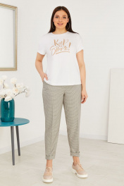 Стильная и современная модель брюк с высокой посадкой из мягкой костюмной ткани с трендовым принтом в клетку. Эти брюки удлиняют силуэт, маскируя неровности фигуры. Удобства добавляет эластичная тесьма в поясе по спинке и карманы-"хулиганы" в боковых швах. Удобная и элегантная модель с манжетой по низу подходит как для офиса так и для прогулок, комбинируясь с майками и топами, джемперами , свитшотами 52 р. - Брюки: Длина брюк с поясом – 101 см, Длина по внутреннему шву – 68 см, Обхват брючин сверху – 68 см, Обхват брюк по низу – 34 см, Ширина по бедрам – 56 см, Ширина по талии – 42 см. 56 р. - Брюки: Длина брюк с поясом – 100 см, Длина по внутреннему шву – 67 см, Обхват брючин сверху – 70 см, Обхват брюк по низу – 36 см, Ширина по бедрам – 60 см, Ширина по талии – 46 см.