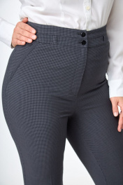 Брюки женские на притачном разрезном поясе, на поясе расположены шлевки. Застегиваются брюки на тесьму молнию и две пуговицы. Посадка средняя, по линии талии. Брюки со стрелками, плотно обтягивающими по бедрам, немного заужены к низу. Стиль-повседневный. Передние половинки брюк с боковыми наклонными карманами. На задних половинках брюк-имитация прорезного кармана, листочка. Низ брюк под строчку. 52 р. - Брюки: Длина брюк с поясом – 110 см, Длина по внутреннему шву – 78 см, Обхват брючин сверху – 66 см, Обхват брюк по низу – 38 см, Ширина по бедрам – 56 см, Ширина по талии – 45 см . 58 р. - Брюки: Длина брюк с поясом – 110 см, Длина по внутреннему шву – 78 см, Ширина брючин сверху – 72 см, Обхват брюк по низу – 40 см, Ширина по бедрам – 62 см, Ширина по талии – 51 см