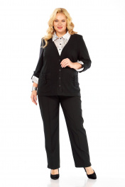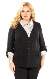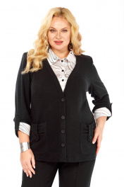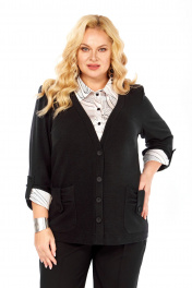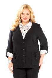 Имитация рубашки под джемпером - это отличный вариант практичной и удобной одежды. Джемпер прямого силуэта, комбинированный, выполнен из мягкого трикотажа и блузочной ткани. Полочка с нагрудными вытачками, накладными фигурными карманами, декорированной патой. Стояче-отложной воротник блузки хорошо смотрится с V-образным вырезом горловины. Рукав втачной, одношовный, с отложной манжетой из отделочной ткани. Пата на рукаве позволяет регулировать его длину.