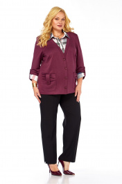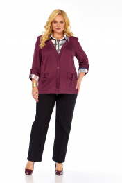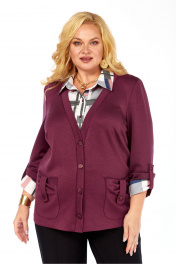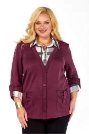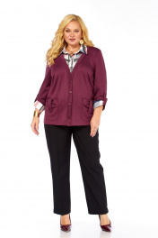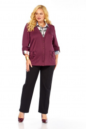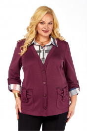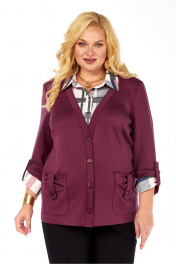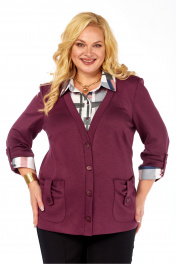 Имитация рубашки под джемпером - это отличный вариант практичной и удобной одежды. Джемпер прямого силуэта, комбинированный, выполнен из мягкого трикотажа и блузочной ткани. Полочка с нагрудными вытачками, накладными фигурными карманами, декорированной патой. Стояче-отложной воротник блузки хорошо смотрится с V-образным вырезом горловины. Рукав втачной, одношовный, с отложной манжетой из отделочной ткани. Пата на рукаве позволяет регулировать его длину.