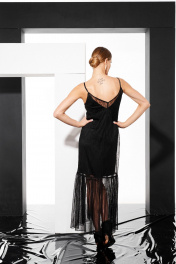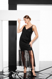 Платье-комбинация из кружева и текстиля, миди, V-образный вырез ELLETTO 1055 черный