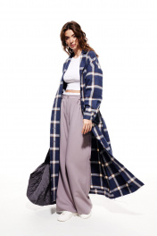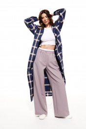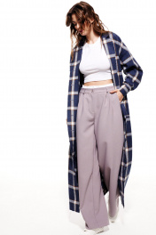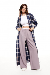 Брюки женские, прямые, длинные, из костюмно-плательной ткани, застежкой молнией спереди и двумя складками. Задние половинки с талиевыми вытачками. Брюки с обтачным поясом и шлевками, так же с контрастным отделочным поясом на резинке. В боковых швах карманы с отрезным бочком. длина изделия 109 см параметры 42 44 46 48 обхват талии 68 72 76 80 обхват бедер 105 109 113 117