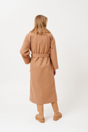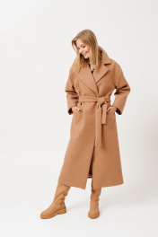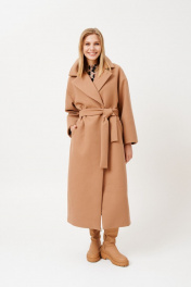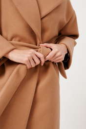 Пальто женское, на запах, длиной миди из трикотажной ткани. Пальто со спущенной линией плеча. Застежка на потайные пришивные кнопки. Перед с функциональными прорезными карманами с листочками, листочки с втачными концами. В боковых швах шлевки под съемный пояс из основной ткани. Рукав одношовный, длинный. Пальто с широким отложным воротником пиджачного типа. Пальто на подкладке. В комплект входит съемный пояс из основной ткани. длина изделия - 121 см длина рукава от горловины - 74,2 см параметры 42 44 46 48 50 52 54 обхват груди 108 112 116 120 124 128 132 обхват талии 104 108 112 116 120 124 128 обхват бедер 114 118 122 126 130 134 138 обхват рукава 45.9 45.9 45.9 50.3 50.3 50.3 50.3