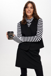Черный трикотажный джемпер приталенного силуэта с высоким воротником ELLETTO 3681 черно-белый