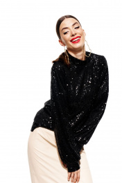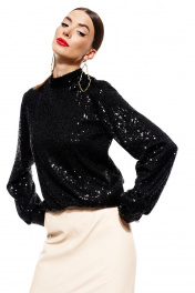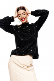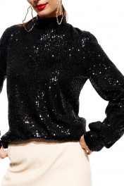 Джемпер с пайетками прямой посадки и длинным рукавом ELLETTO 3685 черный