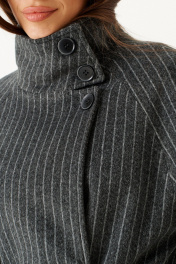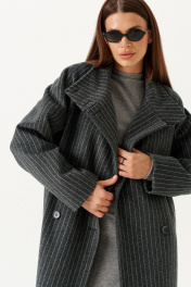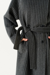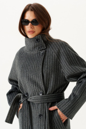 Пальто из трикотажного полотна прямого силуэта, с центральной двубортной застежкой на петли и пуговицы, на подкладке. Воротник – стойка с застежкой на петли и пуговицы. Полочки с прорезными карманами с листочкой. Спинка со средним швом и шлицей. Рукав – реглан. В комплекте пояс из основной ткани.