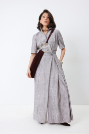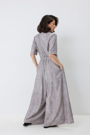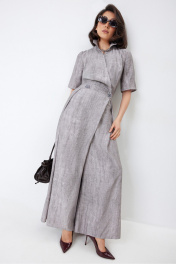 Комбинезон женский, отрезной по линии талии. Верхняя часть с рельефами по переду и вытачками по спинке, что обеспечивает стройность фигуры. Воротник стояче-отложной. Застежка на запах с петлями, пуговицами и потайной магнитной кнопкой обеспечивает практичность и легкость в использовании. Рукав втачной, короткий. Нижняя часть комбинезона оформлена складками и имитацией запаха, что добавляет модели свободы движений. В боковых швах расположены карманы. По спинке на уровне талии есть резинка для хорошей фиксации. Этот комбинезон идеально подходит для повседневной носки и разнообразных образов, сочетая модный стиль, комфорт и практичность. Размер 46 : Верхняя часть комбинезона : ОГ-100, ширина изделия спинки 37, длина изделия спинки по центру-41, ширина плеча-11,5, длина рукава втачного - 30, ширина рукава по низу-17; Нижняя часть : ОТ в собр-76, ОТ в раст-90, длина изделия по боковому шву с поясом-101. Размер 48 : Верхняя часть комбинезона : ОГ-106, ширина изделия спинки 40, длина изделия спинки по центру-43, ширина плеча-12,5, длина рукава втачного -32,5, ширина рукава по низу-18,5; Нижняя часть : ОТ в собр-82, ОТ в раст-96, длина изделия по боковому шву с поясом-102. Размер 50 : Верхняя часть комбинезона : ОГ-110, ширина изделия спинки 40, длина изделия спинки по центру-43, ширина плеча-12,5, длина рукава втачного -32,5, ширина рукава по низу-19; Нижняя часть : ОТ в собр-86, ОТ в раст-100, длина изделия по боковому шву с поясом-102. Размер 52 : Верхняя часть комбинезона : ОГ-114, ширина изделия спинки 40, длина изделия спинки по центру-43, ширина плеча-12,5, длина рукава втачного -32,5, ширина рукава по низу-19,5; Нижняя часть : ОТ в собр-90, ОТ в раст-104, длина изделия по боковому шву с поясом-102.