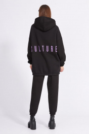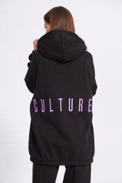 Джемпер выполнен из трикотажного полотна на флисе. Джемпер прямого силуэта, покроя оверзайз, длиной ниже линии бедер. Застежка спереди на молнию. Спинка цельная. Горловина обработана капюшоном. Плечевой шов спущен. Рукав одношовный. Низ рукава и джемпера на эластичной тесьме. В боковых швах карманы. Джемпер декорирован по спинке вышивкой ""CULTURE"". Длина джемпера: р.44-48 - 76 см, р.50-54 -77 см. Длина рукава от точки горловины: р.44-48 - 75 см, р.50-54 -76 см.