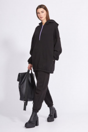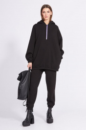 Демисезонный трикотажный джемпер с капюшоном и вышивкой EOLA 2277.1 черный