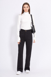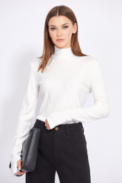 Джемпер выполнен из трикотажного полотна в рубчик. Джемпер приталенного силуэта, длиной чуть выше линии бедер. Перед и спинка цельные. Воротник-стойка. Рукав удлиненный, втачного покроя, с прорезью для большого пальца по низу. Длина джемпера: р.44-48 - 60 см, р.50-54 - 61,5 см. Длина рукава от точки горловины: р.44-48 - 70 см, р.50-54 - 71 см.