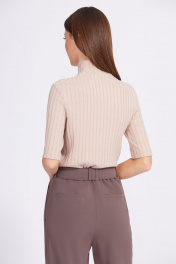 Брюки выполнены из костюмной ткани. Брюки О-образного силуэта (покроя "багги"), на притачном поясе, зауженные к низу, длиной 7/8. Спереди декоративная застежка с гульфиком и боковые карманы с наклонным входом. На задних частях карманы с листочкой. По талии вставлена эластичная тесьма. В комплект входит съемный ремень с обтяжной пряжкой. Длина брюк с поясом: р.42-46 - 96 см, р.48-52 -97,5 см.