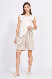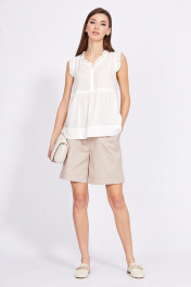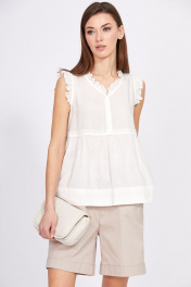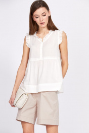 Блуза с рюшем и вырезом V из вискозы и текстиля EOLA 2415.1 молочный