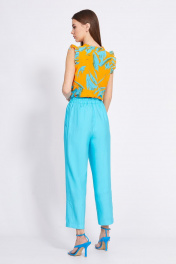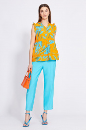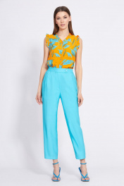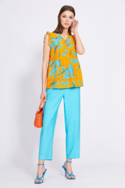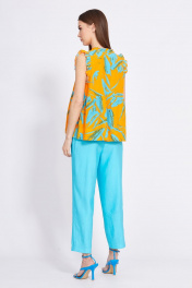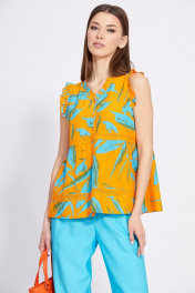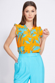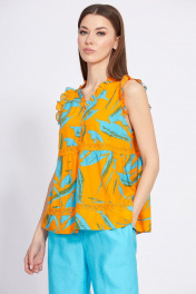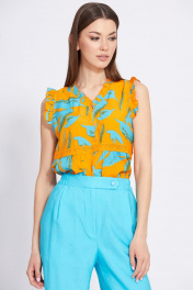 Блуза с рюшем и V-образным вырезом из плательной ткани EOLA 2421 оранжевый-бирюза
