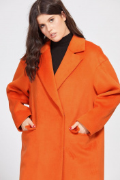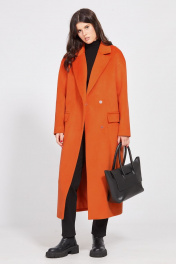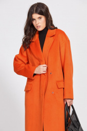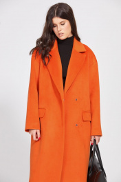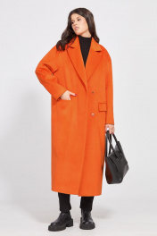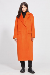Пальто выполнено из пальтовой ткани. Пальто прямого силуэта, длиной до середины икры. Спереди застежка двубортная на пришивные кнопки, горизонтальные прорезные карманы. Спинка со средним швом со шлицей по низу. Воротник пиджачного типа. Плечевой шов спущен. Рукав одношовный. Пальто на притачной по низу подкладке. Длина пальто: р.44-48 - 126 см, р.50-54 - 127,5 см. Длина рукава: р.44-48 - 74 см, р.50-54 - 75,5 см.