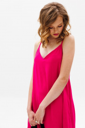 Розовый сарафан А-образного силуэта с карманами EOLA 2651 малина