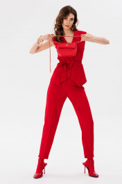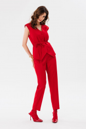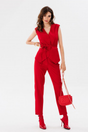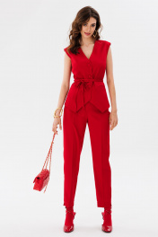 Красные брюки из костюмной ткани зауженные с разрезами EOLA 2661 красный