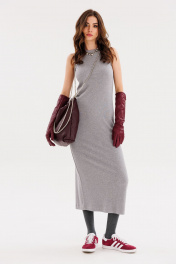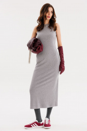 Платье приталенное из трикотажного рубчика с разрезом EOLA 2666 серый