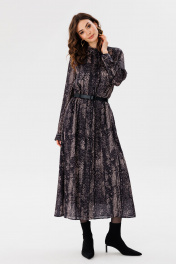 Платье рубашечного силуэта из креп-атласа с принтом EOLA 2681 черный_принт