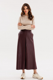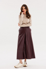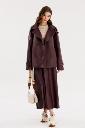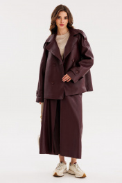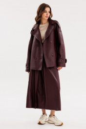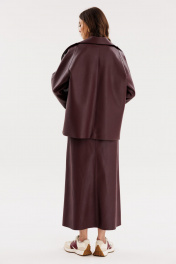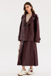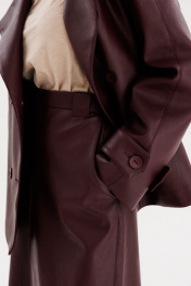 Юбка из экокожи А-образная миди с карманами и складками EOLA 2691 бордовый