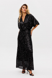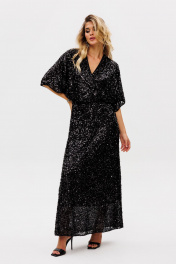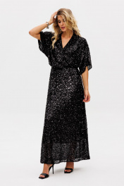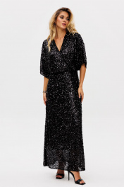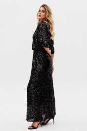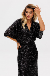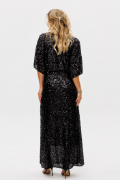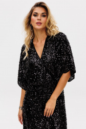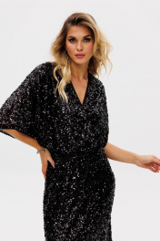 Черное нарядное платье из пайеток и трикотажа с запахом EOLA 2736 черный