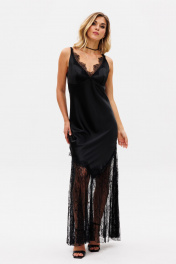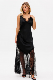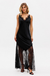 Платье-комбинация из атласа макси с фигурным вырезом EOLA 2747 черный