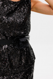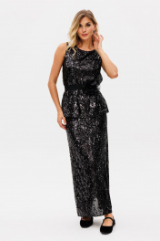 Топ выполнен из трикотажного полотна в пайетки. Топ прямого силуэта, длиной до линии бедер. Перед и спинка цельные. Горловина округлой формы. Плечевой шов укорочен. Топ на отлетной по низу подкладке. Ремень в комплект не входит. Длина топа: р. 42-46 - 61 см, р. 48-52 - 62,5 см.