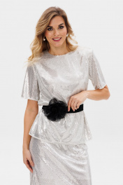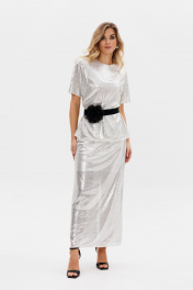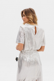 Юбка выполнена из трикотажного полотна с пайетками. Юбка прямого силуэта, длиной миди. Сзади в среднем шве шлица. Юбка на отлетной по низу подкладке. Длина юбки - 98 см. 42 44 46 48 50 52 ЮБКА Длина по переду 98 98 98 98 98 98 Объем по талии 62/100 66/104 70/108 74/112 78/116 82/120
