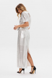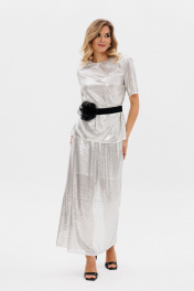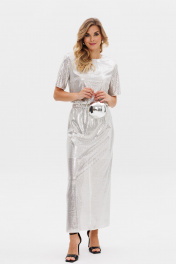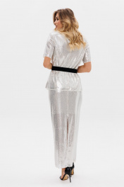 Молочная юбка миди с пайетками и разрезом сзади EOLA 2791 молочный