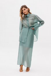 Блуза прямого силуэта из текстиля с люверсами и тесьмой EOLA 2797.1 светлый_изумруд
