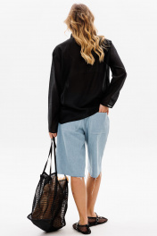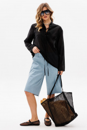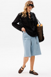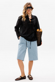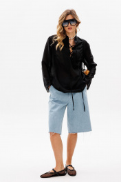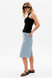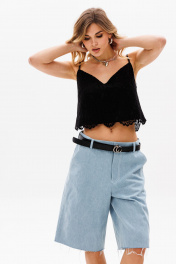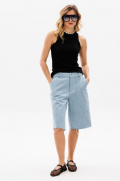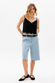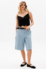 Шорты выполнены из джинса. Шорты прямого покроя, ниже линии колена, на притачном поясе. Спереди боковые карманы с наклонным входом, и застежка на молнию. На задней части кокетки и накладные карманы, и декоративная нашивка по поясу. Длина шорт: р. 42-46 - 59,5 см, р. 48-52 - 61 см. 42 44 46 48 50 52 Длина сбоку 59,5 59,5 59,5 61 61 61 Объем по талии 78 82 86 90 94 98 Объем по бедрам 108 112 116 120 124 128 Ширина пояса 4,5 4,5 4,5 4,5 4,5 4,5