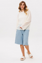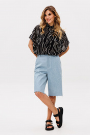 Шорты выполнены из джинса. Шорты прямого покроя, ниже линии колена, на притачном поясе. Спереди боковые карманы с наклонным входом, и застежка на молнию. На задней части кокетки и накладные карманы, и декоративная нашивка по поясу. Длина шорт: р. 42-46 - 59,5 см, р. 48-52 - 61 см.