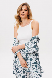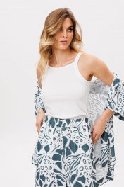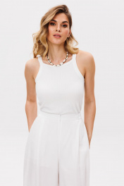 Топ выполнен из трикотажа в рубчик. Топ приталенный, длиной выше линии бедер. Перед и спинка цельные. Горловина переда и спинки окантованы. Длина: р. 42-46 - 48 см, р. 48-52 - 49,5 см.