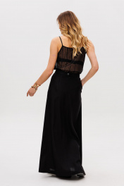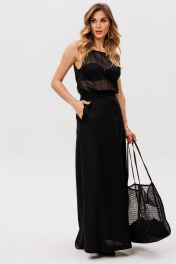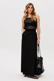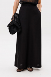 Юбка выполнена из льна. Юбка А-образного силуэта, на притачном поясе, длиной миди. Спереди в боковых швах карманы с наклонным входом. Сзади в среднем шве застежка на потайную молнию. Юбка без подкладки. Длина: р. 44-48 - 104 см, р. 50-54 - 105 см.
