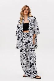 Блуза, брюки EOLA 2858 молочный_черный_принт