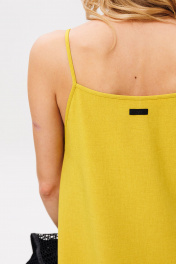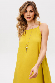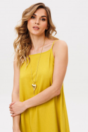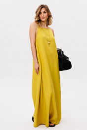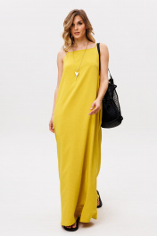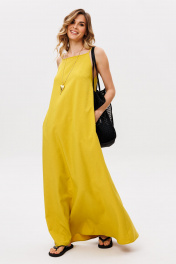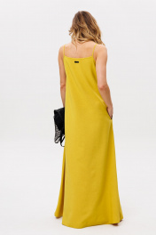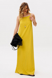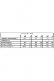 Сарафан выполнен из костюмно-плательной ткани. Сарафан А-образного силуэта. Перед и спинка цельные. Проймы V-образной формы, обработаны окантовкой из основной ткани, переходящей в бретели. В боковых швах карманы. Длина: р. 44-48 - 131 см, р. 50-54 - 132 см.