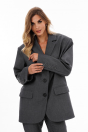 Жакет выполнен из костюмной ткани. Жакет прямого силуэта, длиной ниже линии бедер, покроя "oversize". Спереди под лацканами прорезные карманы с клапанами. Центральная бортовая застежка на пуговицы. На спинке средний шов и шлица. Воротник пиджачного типа. Плечевой шов удлинен. Рукав втачной, двухшовный, со шлицей по низу, застегивающейся на пуговицы. Жакет на притачной по низу подкладке. Ремень в комплект НЕ ВХОДИТ. Длина жакета: р.42-46 - 80 см, р. 48-52 - 81,5 см Длина рукава: р.42-46 - 60 см, р.48-52 - 61 см ЖАКЕТ м. 2887 42 44 46 48 50 52 Длина по центру спинки 80 80 80 81,5 81,5 81,5 Длина рукава 60 60 60 61 61 61 Объем по груди 114 118 122 126 130 134 Объем по талии 112 116 120 124 128 132 Объем по низу 110 114 118 122 126 130 Объем рукава вверху 38,5 40,5 42,5 42,5 44,5 46,5 Объем рукава внизу 30 30 30 32 32 32