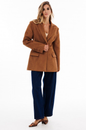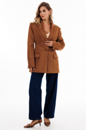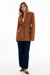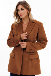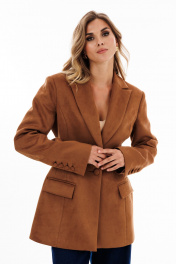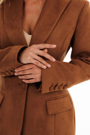 Жакет выполнине из плотной искуственной замши. Жакет Х-обраного силуэта, длиной ниже линии бедер. Спереди рельефы от проймы до низа, прорезные карманы с клапанами и центральная бортовая застежка на пуговицы. Воротник пиджачного типа. На спинке средний шов. Плечевой шов удлинен. Рукав втачной, двухшовный, по низу заднего шва шлица с застежкой на пуговицы. Жакет на притачной по низу подкладке. Длина жакета: р. 42-46 - 76 см. Длина рукава: р. 42-46 - 64 см. ЖАКЕТ м. 2923 42 44 46 Длина по центру спинки 76 76 76 Длина рукава 64 64 64 Объем по груди 92 96 100 Объем по талии 71 75 79 Объем по низу 120 124 128 Объем рукава вверху 34 36 38 Объем рукава внизу 27 27 27