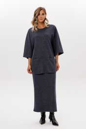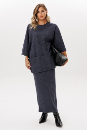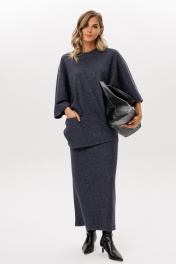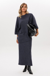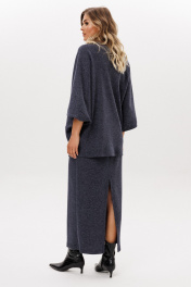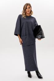 Юбка выполнена из трикотажного полотна. Юбка прямого силуэта, длиной миди, на цельнокроенном поясе с эластичной тесьмой. Сзади разрез в среднем шве. Длина юбки: р. 44-48 - 96 см, р. 50-54 - 97 см 44 46 48 50 52 54 Длина по переду с поясом 96 96 96 97 97 97 Объем по талии 66/108 70/104 74/108 78/112 82/116 86/120 Объем по бедрам 96 100 104 108 112 116 Объем по низу 84 88 92 96 100 104 Ширина пояса 4 4 4 4 4 4