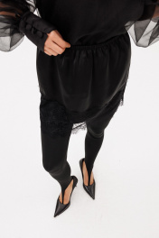 Леггинсы выполнены из эластичного трикотажного полотна. Леггинсы с высокой посадкой, со штрипкой через палец. Подойдут на р.42-44-46 Длина леггинс - см. Гарантийный срок не установлен ГОСТ 31409-2009